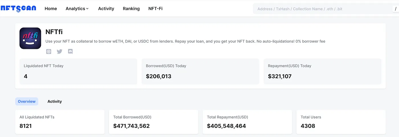 NFTScan NFT-Fi data: https://www.nftscan.com/nftfi