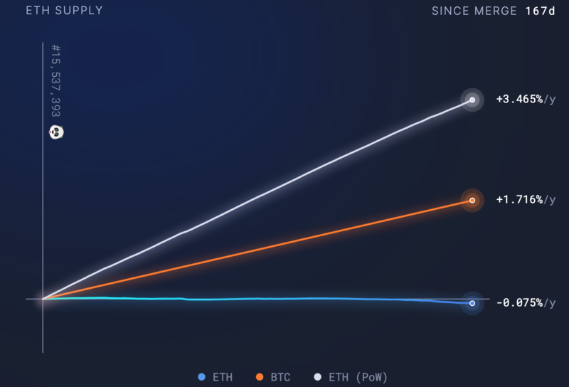 With a portion of the gas fees burned and removed from circulation, coupled with an increase in on-chain activity, such as minting XEN, along with Ethereum's switch to Proof-of-Stake, ETH's supply rate has significantly declined and is currently negative.