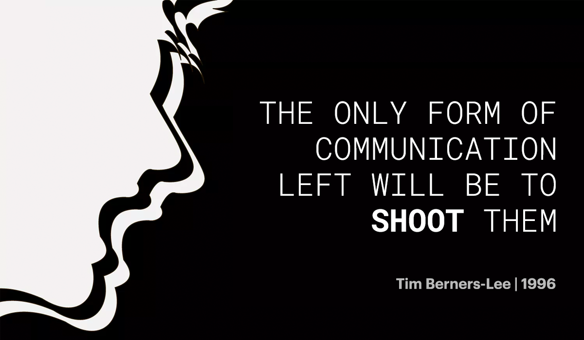 “In fact, there are two equally frightening prospects. On the one hand is the descent to the lowest common denominator, often represented by US fast food and cartoons, with the loss of all that is rich and diverse. On the other, is an extreme of diversity. When anyone can filter mail so that they can read only messages from people who think the same weird things as themselves, and when what they read on the Web they only find by following links from sites of the same strange cult, will they be able to dig themselves into a cultural pothole so deep and so steep that when eventually they physically meet a real person on the street, the lack of common understanding will be total, and the only form of communication left will be to shoot them?” [Berners-Lee, 1996]