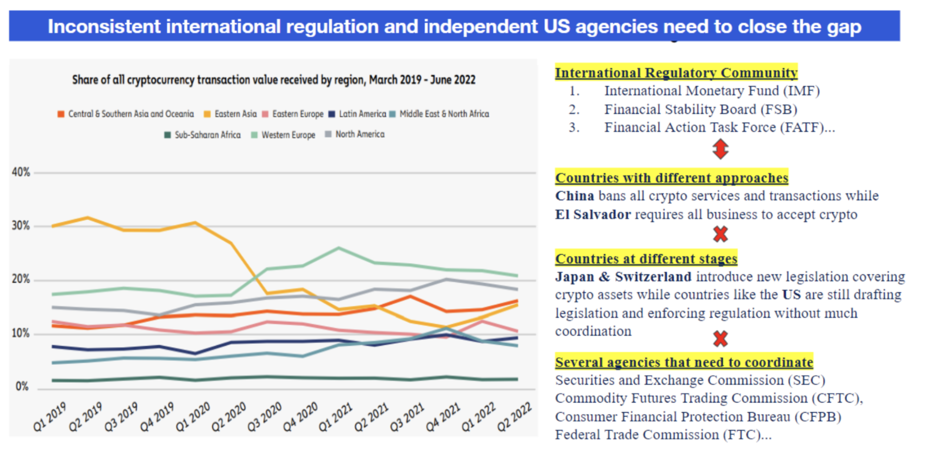 - Lack of global coordination will encourage regulatory arbitrage