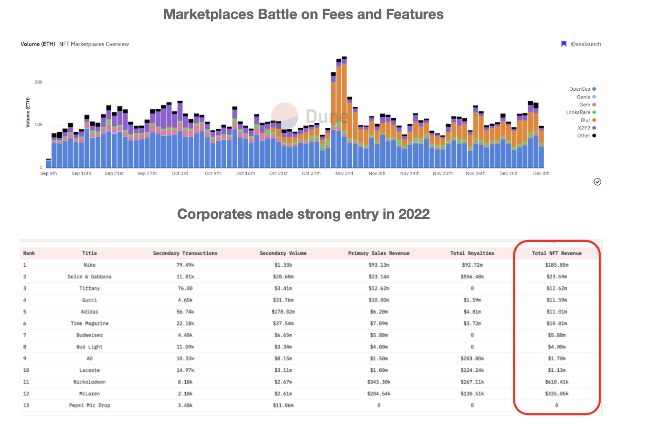 - NFT activity stalling but competition between marketplaces heating up