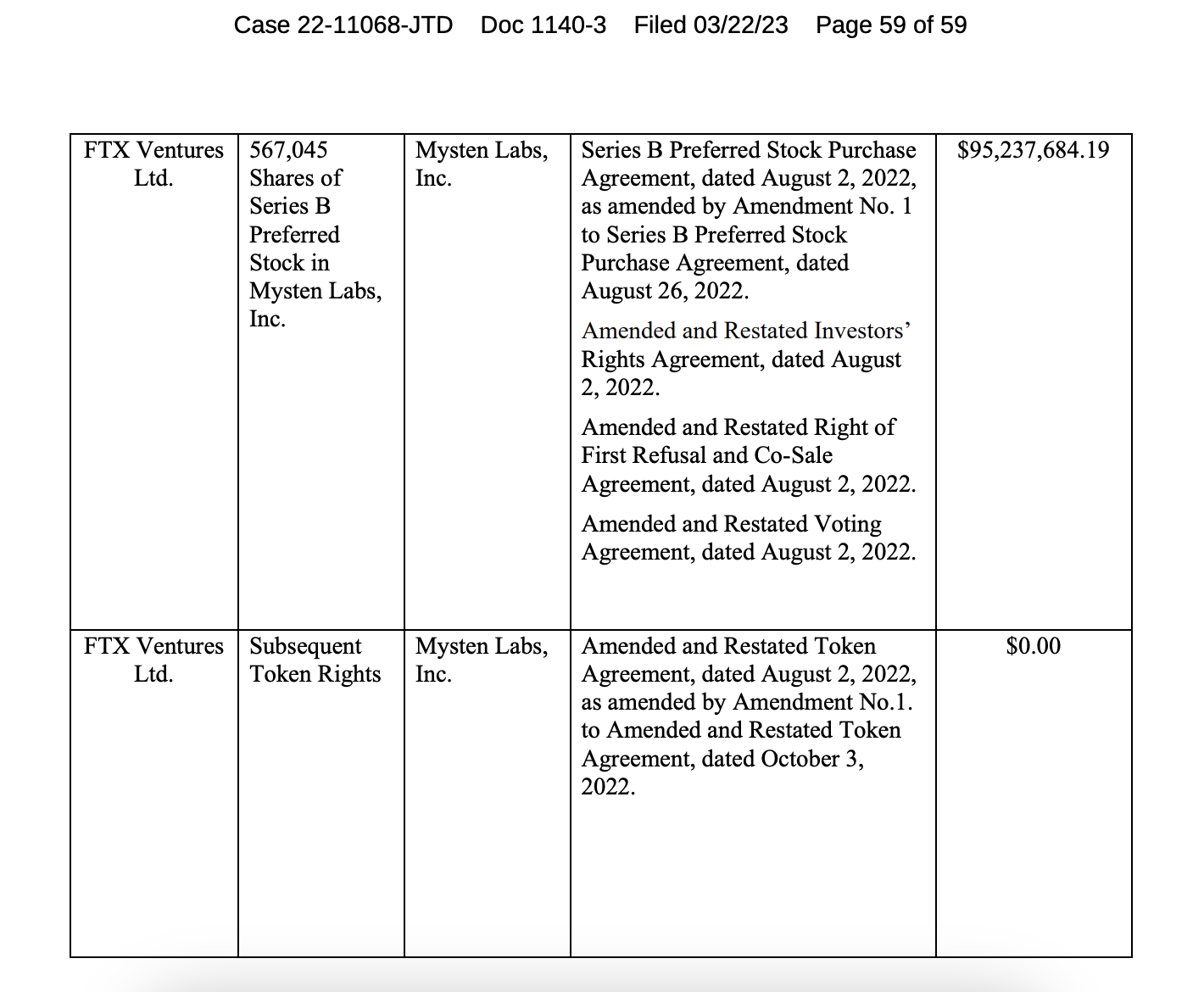 In a March 22 court filing in United States Bankruptcy Court in the District of Delaware, FTX debtors planned to sell roughly $95 million worth of preferred stock back to Mysten in addition to $1 million in SUI tokens.