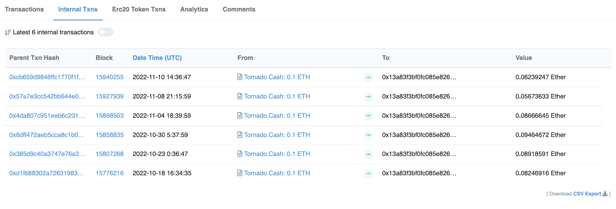 Tornado Cash Withdrawals. Source: Etherescan