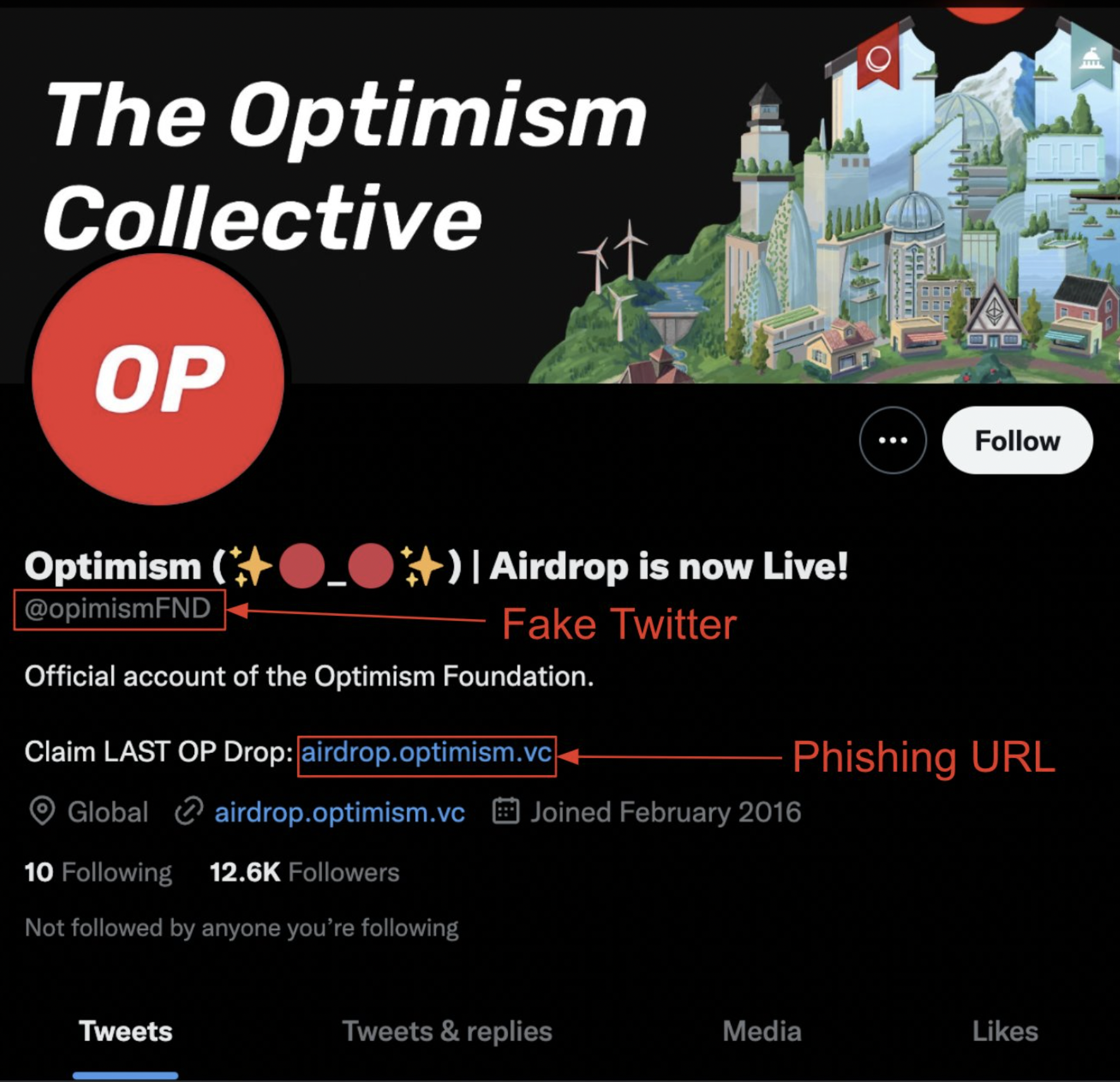 Fake Optimism Twitter account. Source: @CertikAlert