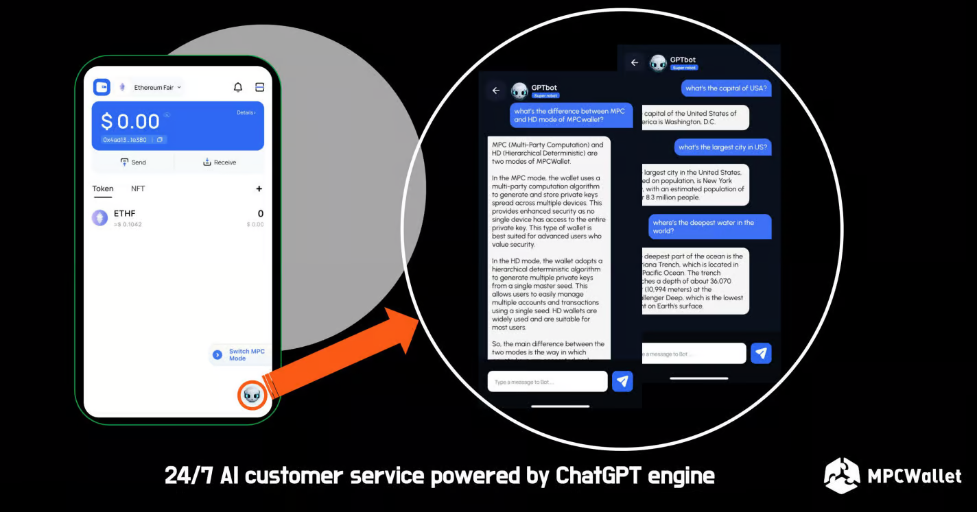 MPCWallet's service ecosystem is also highly comprehensive, including token display, cross-chain swapping, brand partnerships, Tron energy trading, and more, catering to users' needs from all aspects. Furthermore, its powerful AI chatbot, along with 24/7 customer service and technical support, provides users with an extremely convenient service experience.