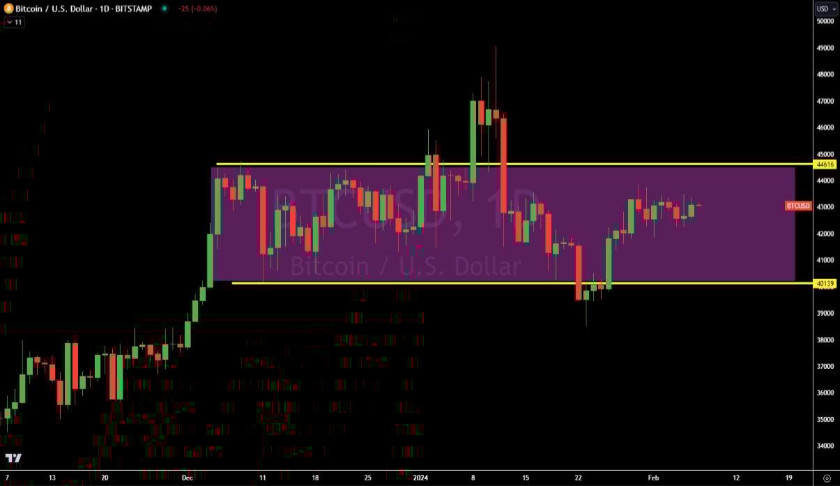 Bitcoin has held up above the $42,000 threshold, even in the wake of the initial ‘sell the news’ event tied to the launch of Bitcoin ETFs. The brief dip below $40,000 reflected the market’s recalibration in response to an increased supply following the transition of the GBTC product to a spot ETF.
