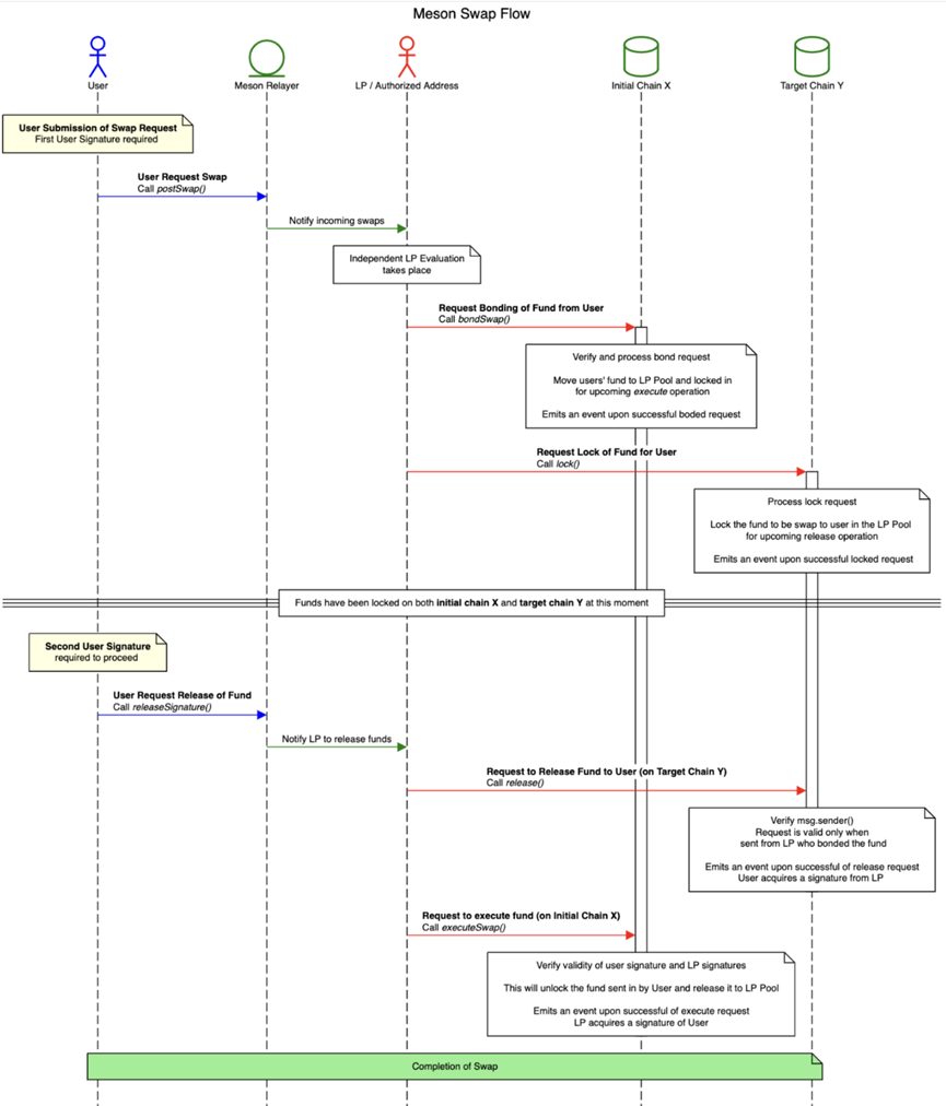 Finally, the LP uses the same release signature to call the Meson contract on the initial chain X to receive the initial funds the user deposited (including the swap fee). The LP can choose to withdraw this portion of the funds or transfer it to their liquidity pool on chain X.