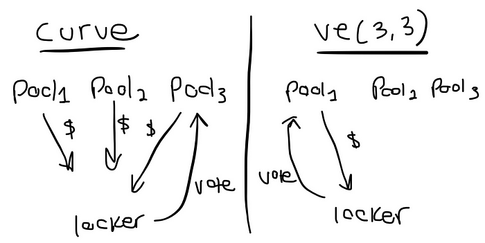 The ve aspect of ve(3,3) comes from Curve Finance and stands for vote-escrowed. I will try not to go into too much detail covering every single aspect of Curve as there are a lot of resources out there for that. So for this article, I will only cover what you need to know to understand the ve(3,3) DEX structure.