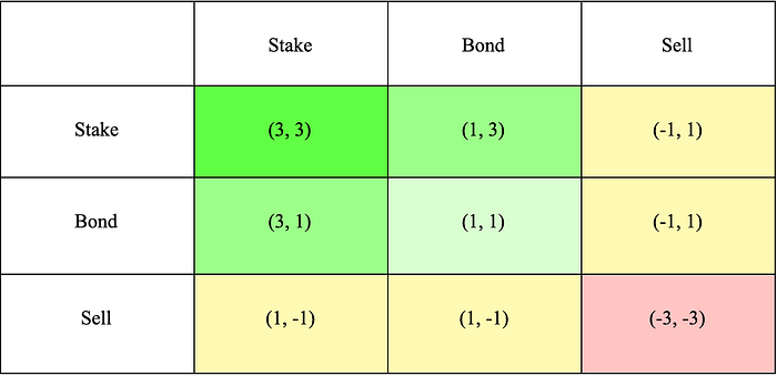 - If one user sells, it diminishes the efforts of another who stakes or bonds (1–1=0)