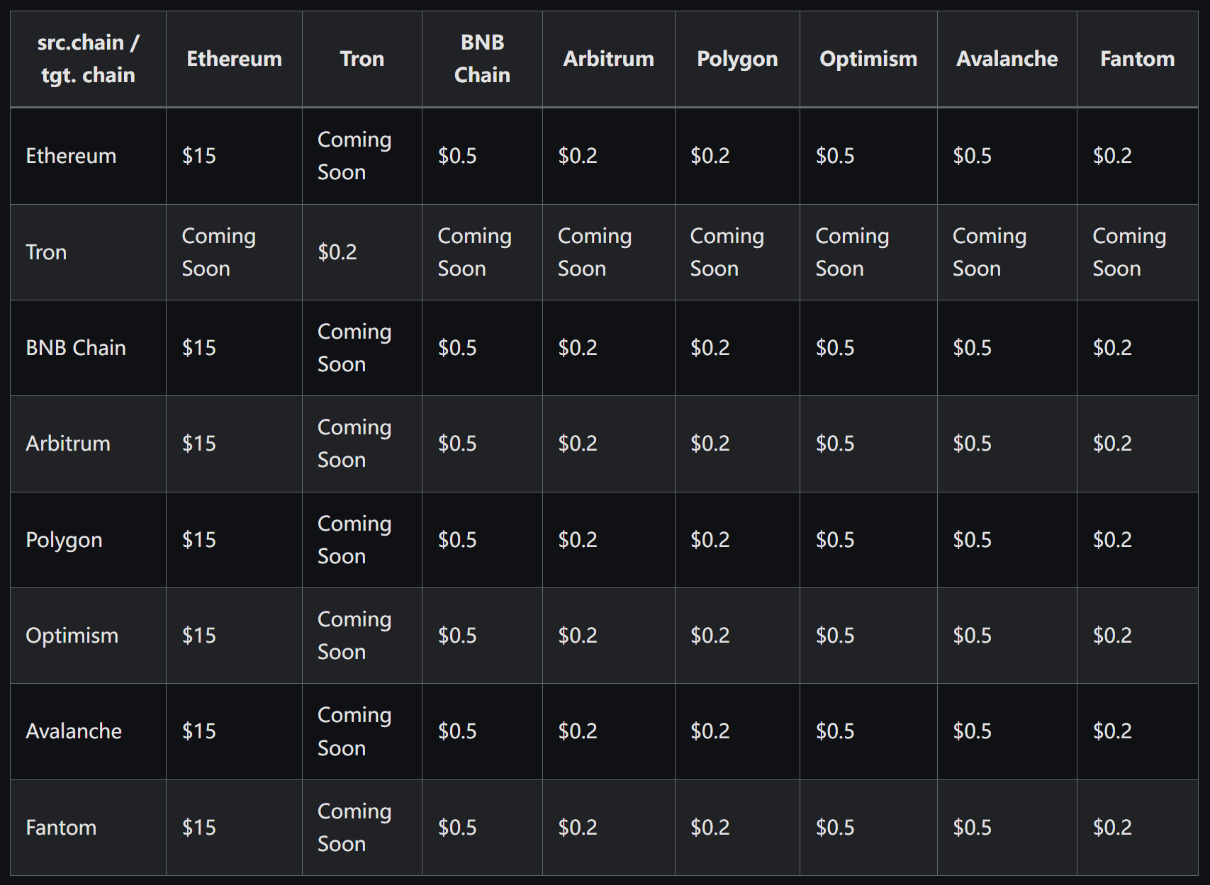 UXUY's fee structure is very transparent and easy to understand. There are three types of fees that users may incur when transacting across chains at UXUY: